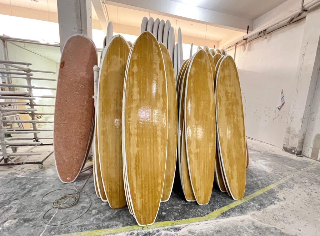 Epoxy softboards, on the other hand, use epoxy resin and wood veneer layers to achieve a semi-hard structure, bridging the gap between a softboard and an epoxy surfboard. This gives them greater responsiveness, durability, and longevity, making them ideal for surf schools and higher-end consumer markets.