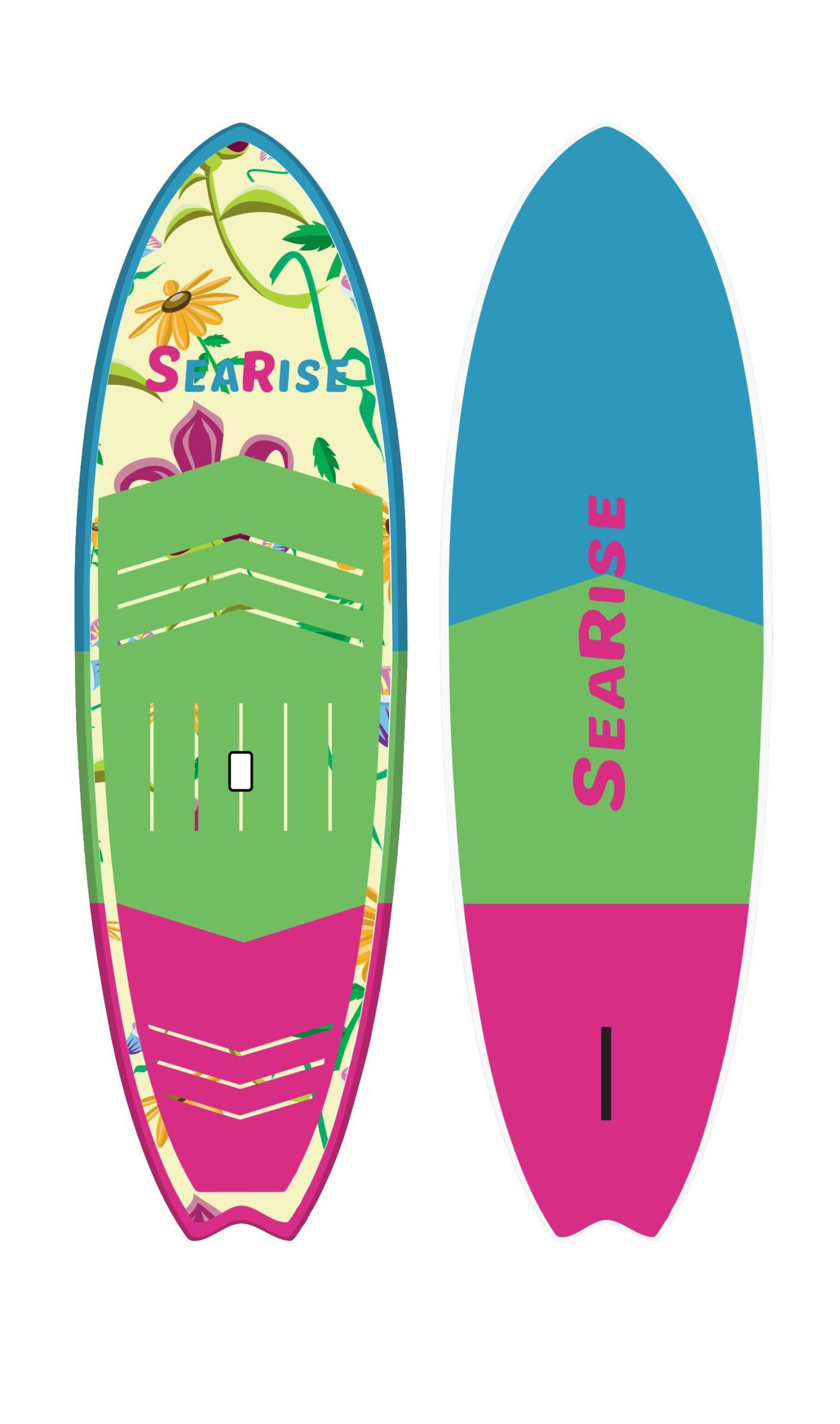 Colorful SUP boards from 10’6″ to 12’6″ using floral fabric on the deck and rich color combinations. With support for complex custom designs, SEARISE helps lifestyle and boutique brands create a strong, individual visual identity